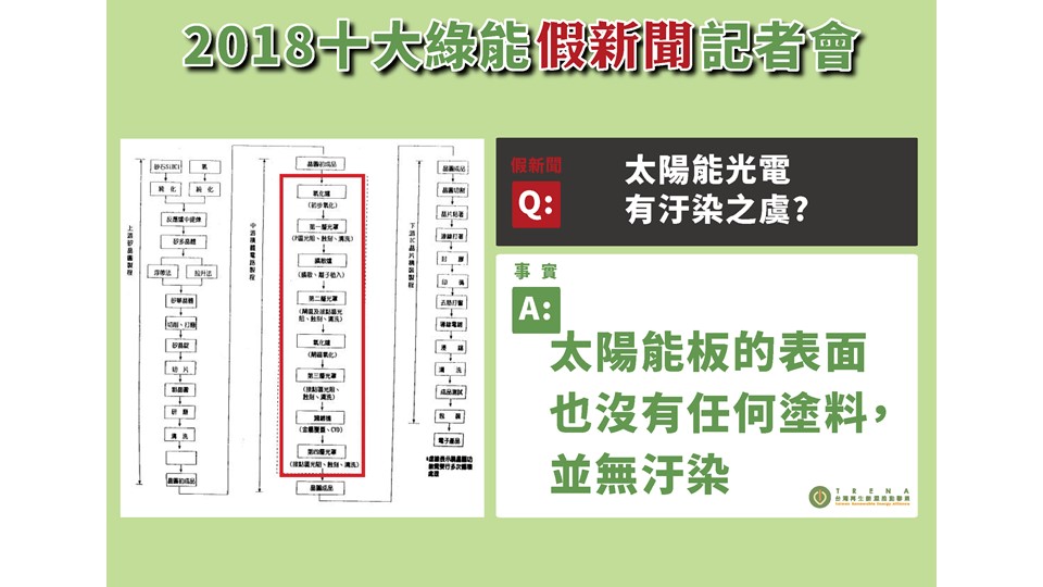 近幾年假新聞的問題在網路世界越演越烈,對各國的選舉、公投都有極大的影響力。今年以核養綠公投過後,因為綠能假新聞的充斥,也實質的影響了一般民眾過去對綠能一向的支持,甚至打亂了台灣在能源轉型關鍵時刻的重要進程。因此,台灣再生能源推動聯盟(簡稱TRENA)在年終回顧2018年一整年到底是哪些假新聞影響了民眾對綠能的認知,又TRENA也擬藉揭露假新聞的謬誤處,以藉此化解社會大眾對再生能源的誤解。