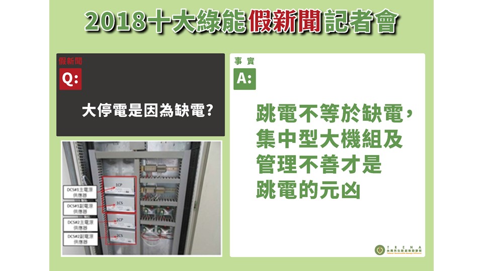 l 事實:跳電不等於缺電,集中型大機組及管理不善才是跳電的元凶